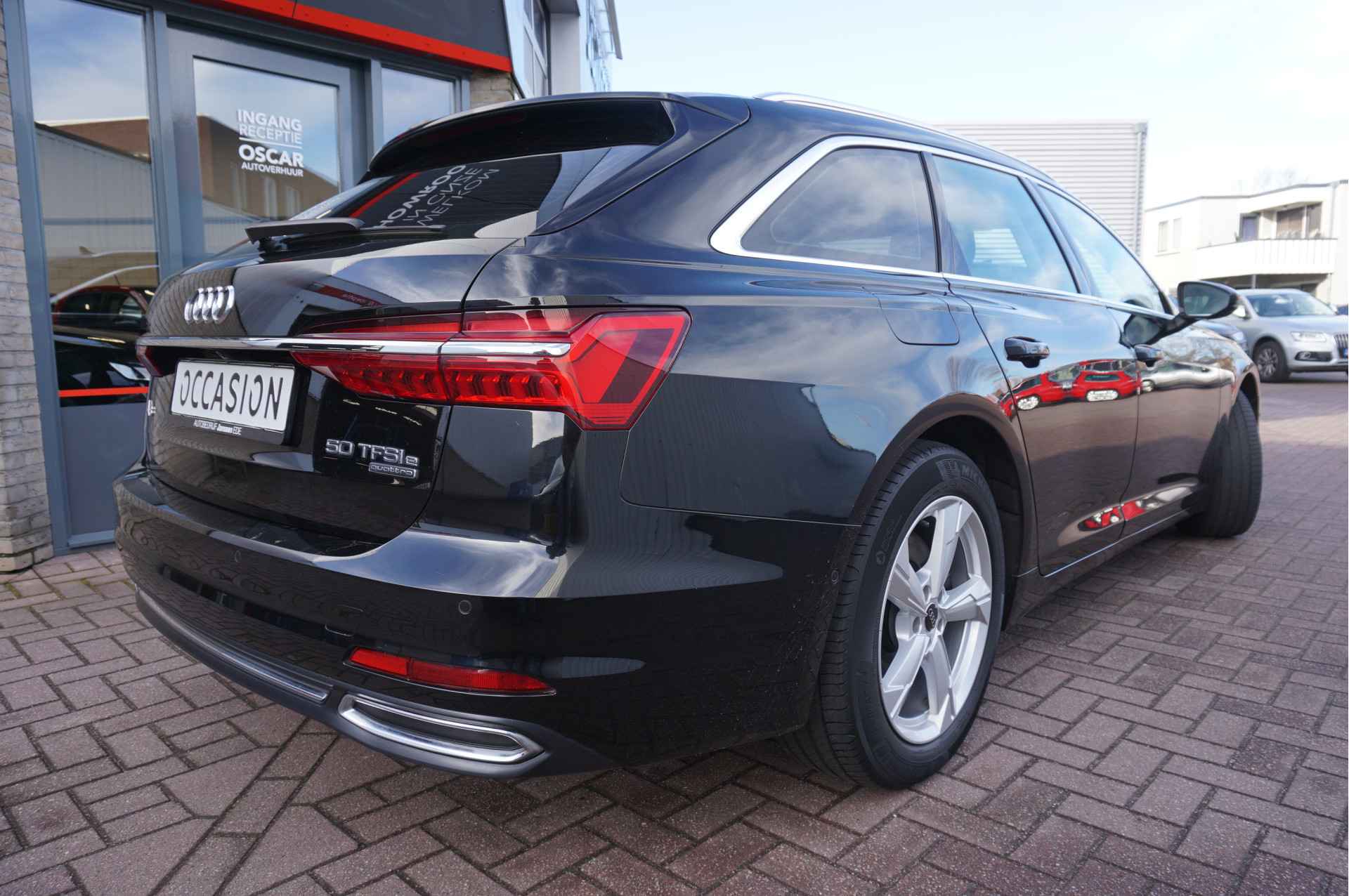 Met zijn inventieve techniek is de hybride Audi A6 Avant tegelijk comfortabel en zuinig met brandstof. Het beste van twee werelden komt samen in de hybride motor. Daarmee wordt deze Audi A6 Avant aangedreven door zowel brandstof als door de elektrische accu, die al rijdend of remmend wordt bijgeladen. Altijd al een voorkeur voor een lederen interieur gehad? Deze Audi A6 Avant heeft het! Behaaglijk onderweg zijn? Als bestuurder geniet u van de verwarmbare voorstoelen. Net als uw bijrijder! De sportstoelen geven het interieur van deze A6 Avant een super strakke en sportieve uitstraling. De elektrische achterklep opent met een druk op de knop, zodat u gemakkelijk toegang heeft tot de bagageruimte. De koplampen met matrix LED-verlichting zijn het hoogst haalbare op het gebied van autoverlichting. U wordt in deze auto ook getrakteerd op 18 inch lichtmetalen velgen, warmtewerend glas, in delen neerklapbare achterbank, LED-achterlichten en verstelbare lendensteunen.