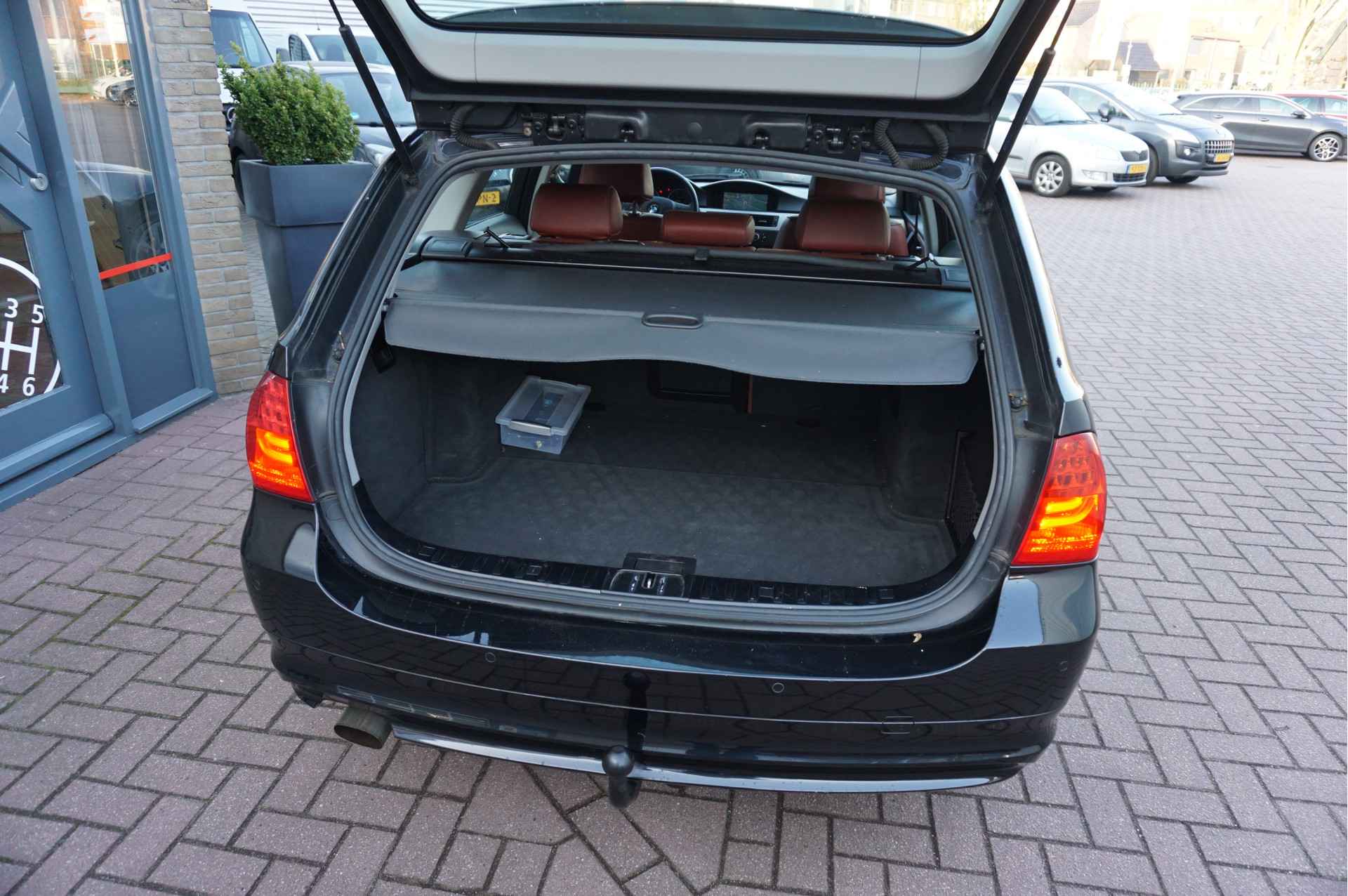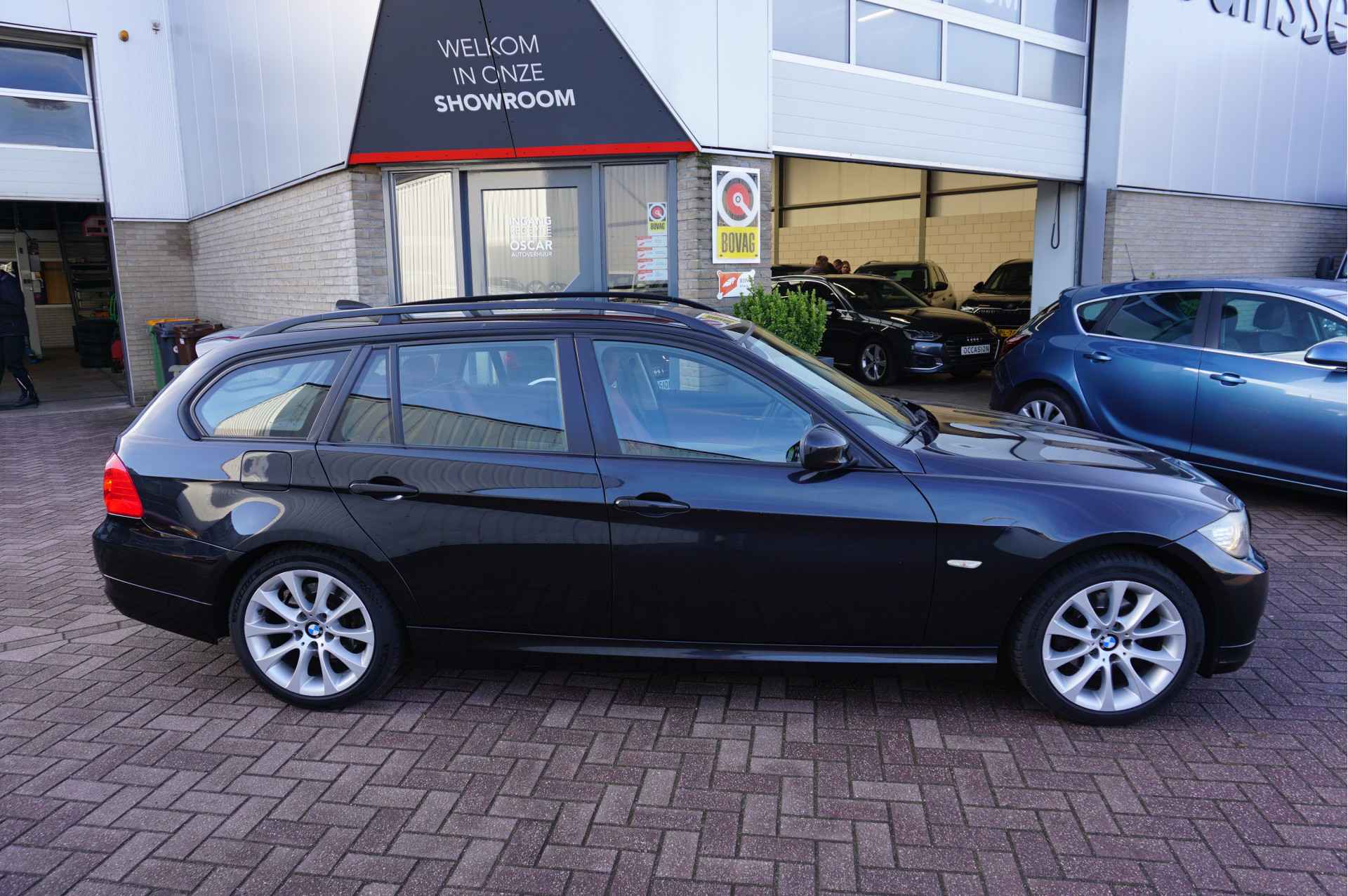 De nieuwste veiligheidssystemen komen in deze BMW 3-serie Touring samen. Zodra een van de banden spanning verliest, geeft het bandenspanningscontrolesysteem een waarschuwingssignaal.