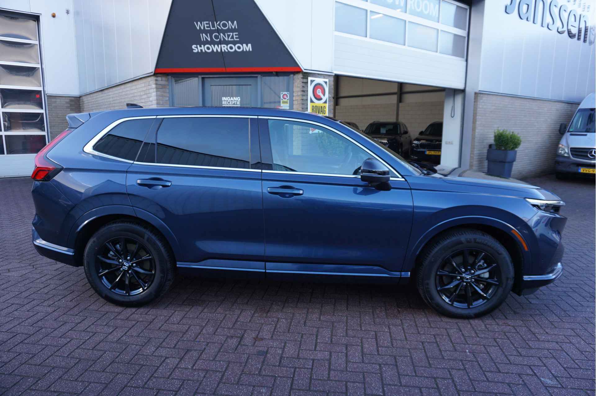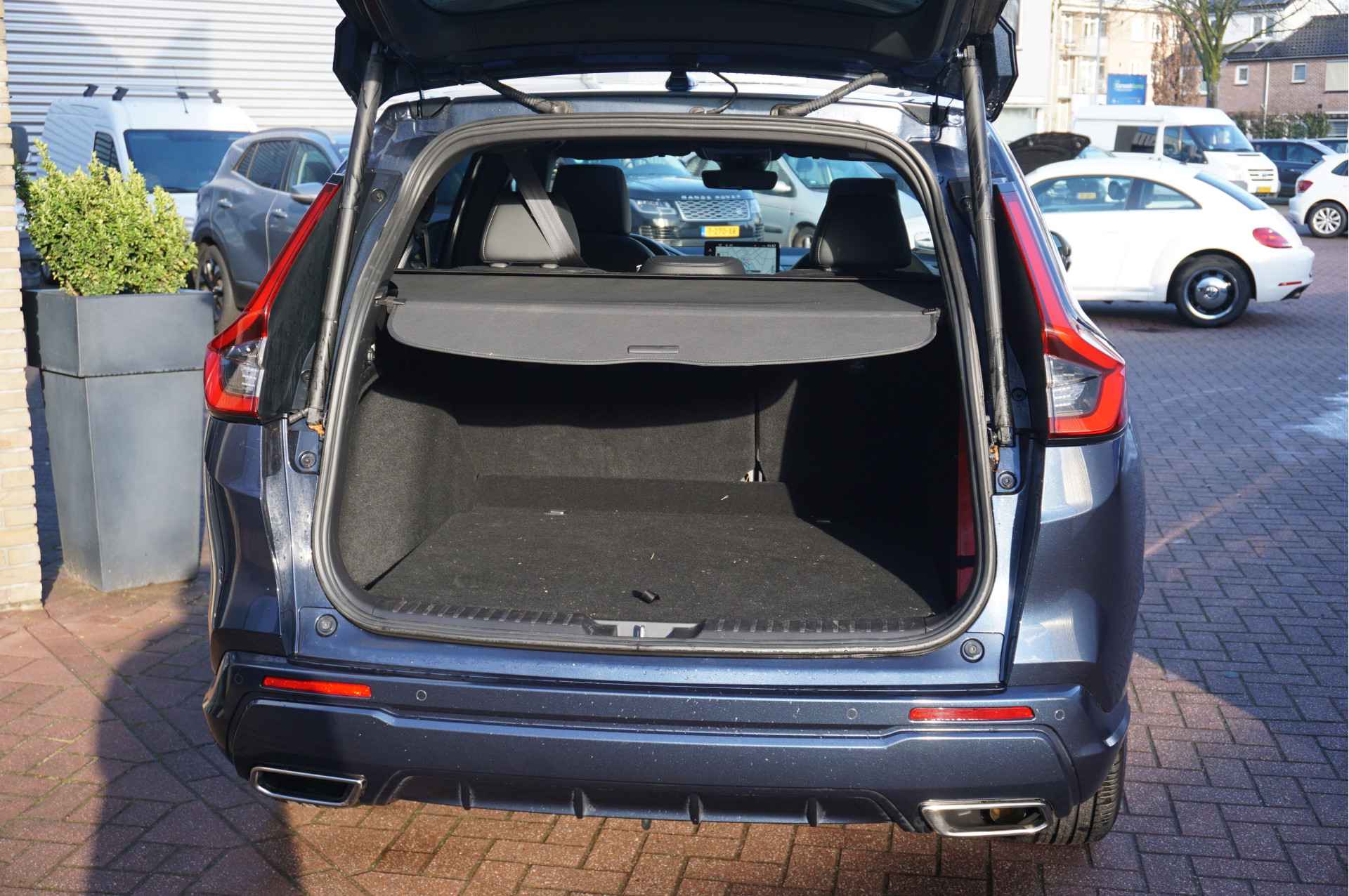 Bij de bouw van de Honda CR-V wordt niets aan het toeval overgelaten. Vandaar dat hier een auto staat die in optimale conditie verkeert. Op een dag rijden we allemaal elektrisch. Maar voor nu is de hybride oplossing van elektrisch en benzine ideaal! Zo ook bij deze Honda CR-V. Zit u goed? De stoelen zijn eenvoudig instelbaar dankzij de elektrische bediening met geheugen. De achterklep opent automatisch met een druk op de knop. Handig als u met volle handen staat. Het glazen panoramadak laat meer licht binnen in het interieur en zorgt voor een magnifiek uitzicht naar buiten. Ook op de achterbank kunnen passagiers zichzelf snel opwarmen dankzij de achterbankverwarming. Ook is de auto voorzien van: 18 inch lichtmetalen velgen, LED-koplampen, adaptief dempingsysteem, trailer assistent, dakspoiler en donker getint glas achter.