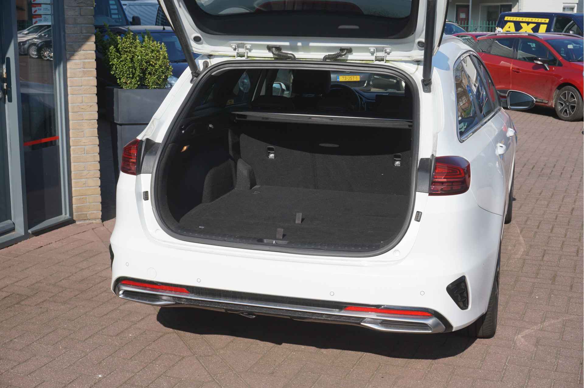 Afstand schatten bij het achteruitrijden? Niet nodig. U weet het precies, dankzij de achteruitrijcamera. Met adaptive cruise control houdt de auto zelfstandig afstand tot uw voorligger. Een veiligheidsverhogende optie waarmee u comfortabel onderweg bent. Kop aan kont langzaam rijden: dan is afstand houden soms lastig. De file assistent helpt en zorgt automatisch voor veilige ruimte tot de voorligger. Ook als die tot stilstand komt. De speciale app verbindt met Connected Services, die de status van vitale functies bijhoudt en waarschuwt als u bijvoorbeeld moet tanken, de bandenspanning moet controleren of olie moet bijvullen. U kunt het audiosysteem met DAB-ontvangst bedienen met de knoppen op het stuur of zelfs met uw stem. Wat u ook in deze auto kunt vinden zijn electronic climate control, regensensor, keyless entry, automatisch dimmende binnenspiegel en lederen versnellingspook.