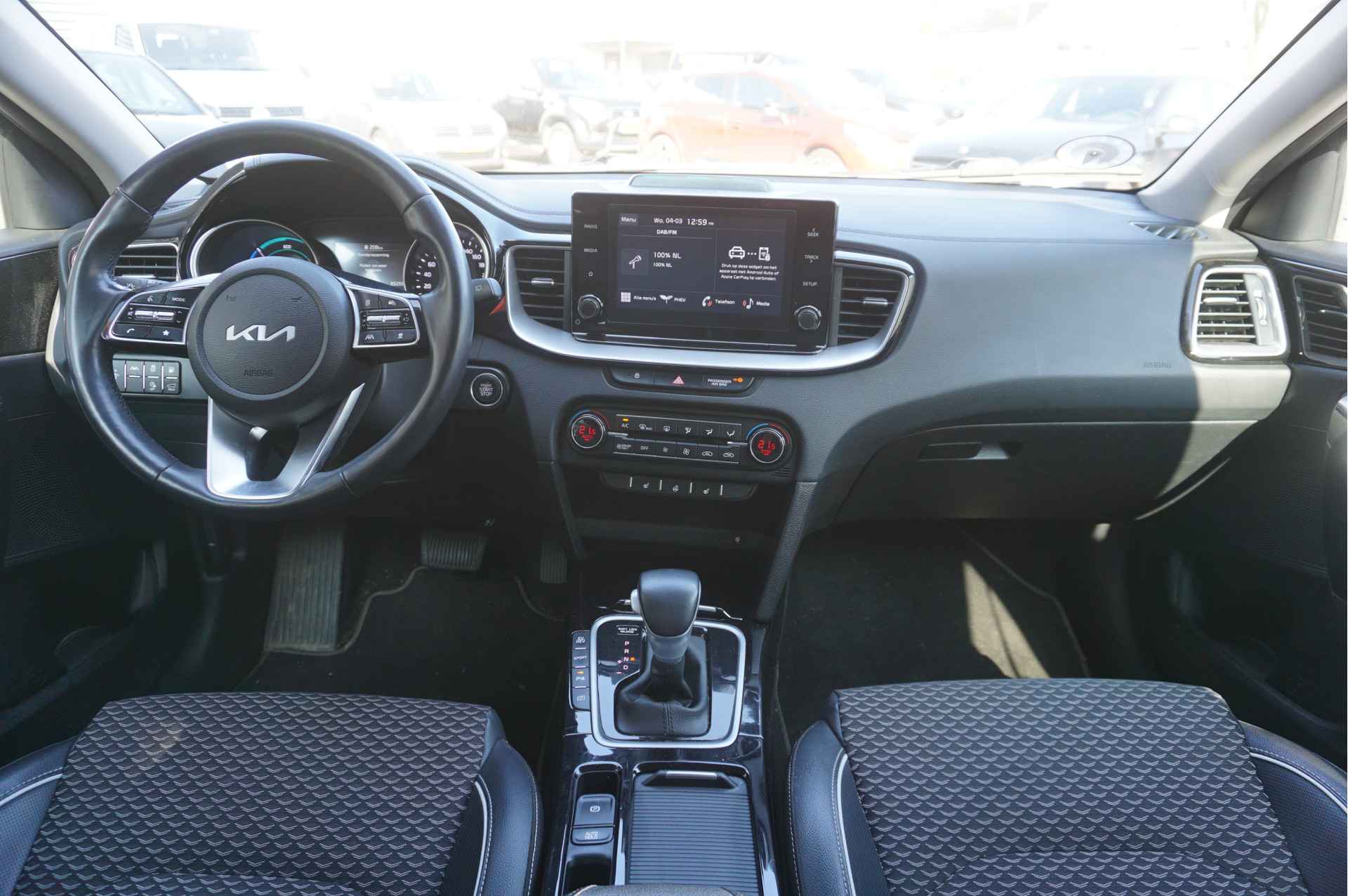 Een handige optie is de achteruitrijcamera. Achteruitrijden, inparkeren en manoeuvreren gaat gemakkelijker dan ooit. Adaptive cruise control houdt de ingestelde snelheid vast en houdt afstand tot het voertuig voor u. De aanwezige file assistent meet de afstand tot uw voorligger en zorgt voor een veilige afstand. Staat het voor u opeens stil? Dan zorgt het systeem dat de auto ook stopt. Slimme spraakbesturing herkent gesproken opdrachten en voert ze uit. Dankzij Connected Services houdt u de auto nog gemakkelijker in topconditie. Elke dag. Met electronic climate control, DAB ontvangst, regensensor, keyless entry, automatisch dimmende binnenspiegel en lederen versnellingspook is deze Kia helemaal compleet.